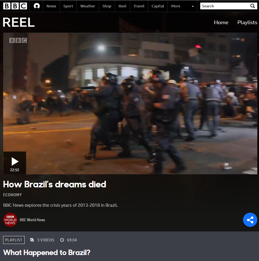 Aproveito o post curtinho pra recomendar que você tire um tempinho pra assistir o documentário da BBC sobre o que aconteceu com o Brasil, de como os sonhos do país do futuro morreram. É muito triste, mas necessário. São três partes de 22 minutos cada, e, por enquanto, não tem legendas, mas dá pra entender bastante porque todos os depoimentos são em português.
