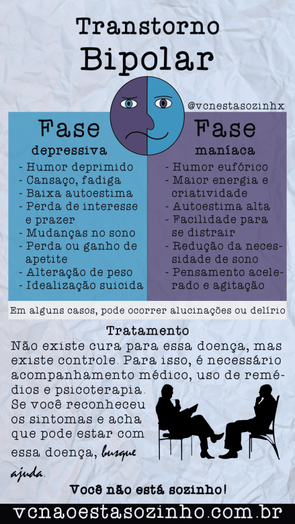 A oscilação é entre estados (que podem durar semanas ou até mesmo meses) de mania, hipomania e depressão.
