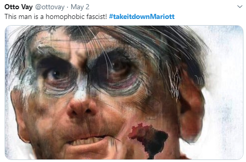 Esta semana foi bastante intensa. Circulou uma petição exigindo que o evento fosse cancelado. Um senador democrata disse que Bolso era um "notório homofóbico" (bolsominions gritaram "Vai pra Cuba!"). Lançamos tags no Twitter como #CancelBolsonaro e #TakeItDownMariott (para que o hotel acabasse com o evento). Manifestantes fizeram protestos na frente do hotel. Vários patrocinadores, como a Delta Airlines, o Financial Times e a consultoria Bai e Company caíram fora.